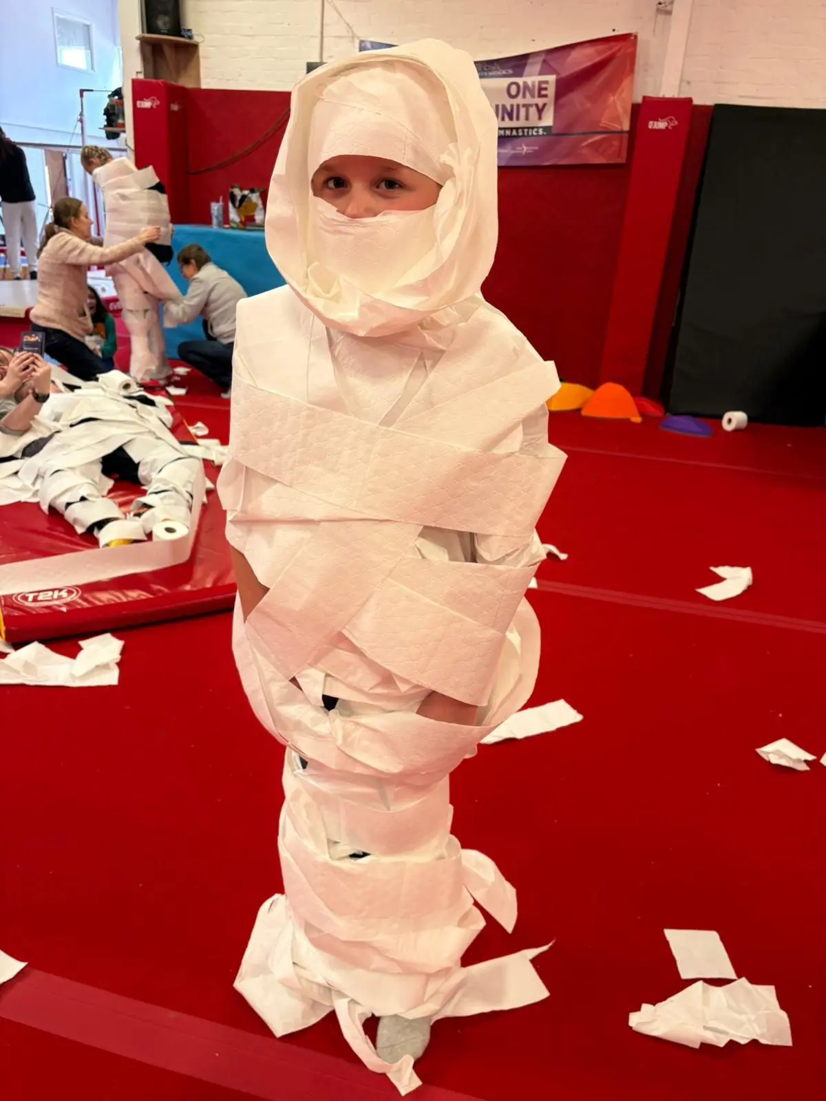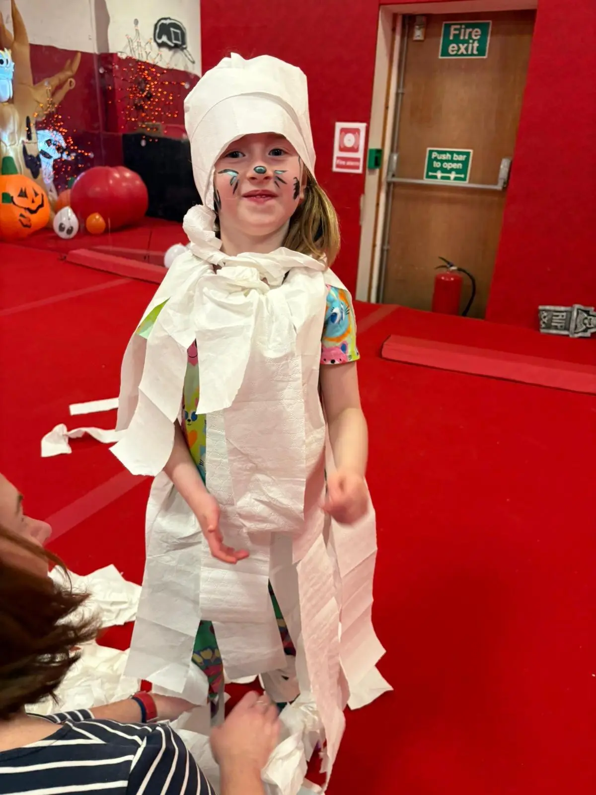 The half-term sessions even included a special Halloween-themed activity, where children, and some enthusiastic parents, wrapped themselves up in loo roll before working together to “break out” as one big group. It was a hilarious and heartwarming moment that perfectly captured the spirit of Bounceback: teamwork, laughter, and joy in motion.