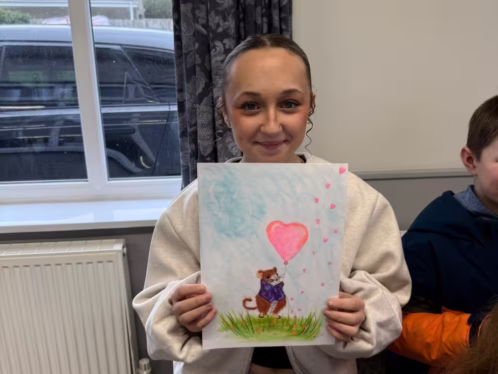 In this Valentine’s-themed session, the children learned step by step how to draw a charming cartoon mouse. With Rachel’s clear guidance and encouragement, each child built their character from simple shapes into a finished design full of personality.